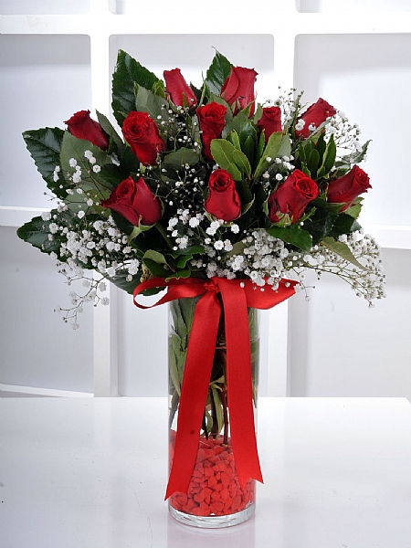 Vazoda 11 Kirmizi Gül